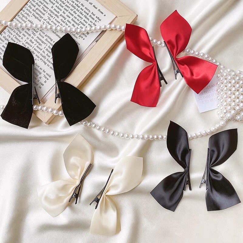 1 đôi kẹp tóc gắn nơ phong cách dễ thương dùng làm quà tặng phụ kiện chụp ảnh có sẵn
