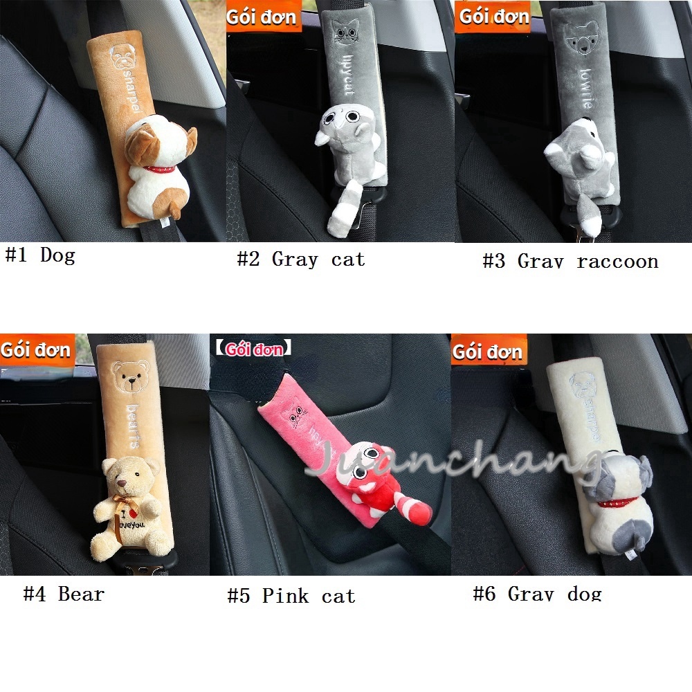 1 Đệm Bọc Dây Đai An Toàn Bằng Vải Lông Kiểu Hoạt Hình Thông Dụng Cho Xe Hơi Đai đeo an toàn bảo vệ vai thiết kế hình động vật dễ thương mềm mại tiện lợi cho xe ô tô