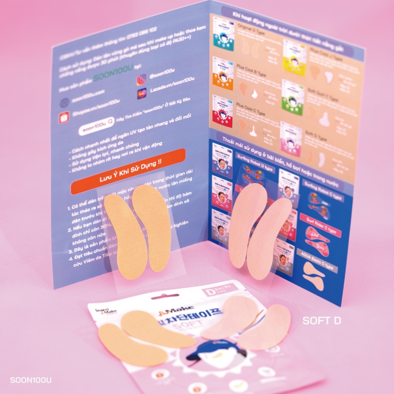 *** Tất cả sản phẩm của &Make đang được bán tại các nơi không phải ở SOON100U Shop, KOCOS.AQUADUO Shop đều không phải là sản phẩm chính nghạch. Chúng tôi sẽ không áp dụng chính sách tư vấn cũng như đổi trả, hoàn trả hàng đối với trường hợp mua sản phẩm ngoài các shop đã nêu trên. Quý khách vui lòng lưu ý trước khi mua hàng *** [TÁCH LẺ] 1 Cặp Miếng Dán Chống Nắng &Make Bảo Vệ Da Mặt Chống Tia UV, Dành Cho Thể Thao Ngoài Trời Golf v.v... [Original D ]: Chống tia UV-A 92.6%,UV-B 95.2%.Bám dính mạnh với mồ hôi và nước,chống chịu chỉ số UV trên 3. Giảm thiểu dấu vết, nhờn rít khi sử dụng. [Soft D]: Chống tia UV-A 99.1%,UV-B 99.5%. Chống chịu chỉ số UV trên 3, giảm thiểu để lại dấu vết, nhờn rít trên da. Chứa soft gel có khả năng Post-it giúp dán lại khi sản phẩm bị rơi ra khi sử dụng. [Soft Goft C] : Chống tia UV-A 99.1%,UV-B 99.5%. Chống chịu chỉ số UV trên 8, giảm thiểu để lại dấu vết, nhờn rít trên da. Chứa soft gel có khả năng Post-it giúp dán lại khi sản phẩm bị rơi ra khi sử dụng. [Plus Cool B]: Chống tia UV-A 98.6%,UV-B 99.8%. Chứa hydrogel làm giảm nhiệt độ trên da và chống chịu chỉ số UV trên 6. Giảm thiểu dấu vết, nhờn rít khi sử dụng. [Plus Cool C]: Chống tia UV-A 98.6%,UV-B 99.8%. Chứa hydrogel làm giảm nhiệt độ trên da và chống chịu chỉ số UV trên 8. Giảm thiểu dấu vết, nhờn rít khi sử dụng. [Plus Cool J]: Chống tia UV-A 98.6%,UV-B 99.8%. Chứa hydrogel dịu mát giúp làm giảm nhiệt độ trên da và chống chịu chỉ số UV trên 8. Giảm thiểu dấu vết hay nhờn rít khi sử dụng. * HDSD: Thoa kem chống nắng (SPF 30 PA+++ trở lên) vào vị trí sẽ dán miếng dán trước từ 20-30 phút. Bóc miếng film trước khi sử dụng và dán vào các vùng dưới mắt, gò má. Nhẹ nhàng tháo miếng dán khi không sử dụng nữa. * Lưu ý khi sử dụng: Sử dụng kem chống nắng để khi tháo ra,da không bị đau. Trường hợp không sử dụng kem chống nắng, trước khi tháo ra hãy thoa một ít nước lên bề mặt miếng dán sau đó nhẹ nhàng loại bỏ nó.Trước khi sử dụng hãy tháo ra dán và tháo ra trên mu bàn tay từ 1-2 lần sau khi bóc miếng film ra khỏi sản phẩm