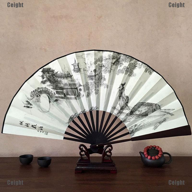 Jettingbuy 1 Chiếc Quạt Xếp Vải Lụa Tre Phong Cách Trung Hoa Cổ Điển
