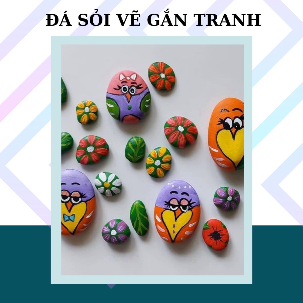 Tên sản phẩm: Đá cuội, đá sỏi dùng vẽ tranh đá tuyển sẵn 1 kg size 4-5 cm được 20 viên Nguyên vật liệu: - Đá cuội trơn hình dáng tự nhiên. - Màu sơn Acrylic. - Cọ vẽ. 🖌 Bây giờ hãy bắt đầu thổi hồn cho đá bằng những tác phẩm của riêng mình 🖌 👉 Decor phòng không g