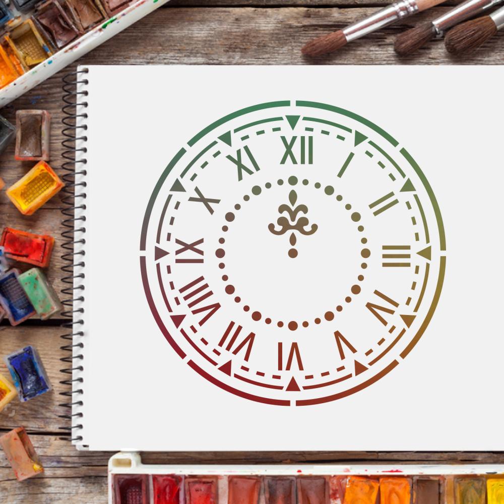 1 Khuôn Nhựa Hình Vuông 300x300mm Họa Tiết Đồng Hồ Có Thể Tái Sử Dụng Dùng Để Vẽ Tranh Trên Vải / Giấy / Tường / Gỗ