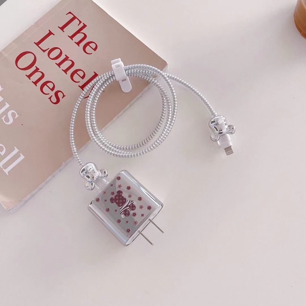 1 Set Vỏ Bảo Vệ Dây Cáp Sạc USB/ Truyền Dữ Liệu Bằng TPU Mềm Hình Gấu 3D Sang Trọng 18W/20W Dành Cho iPhone