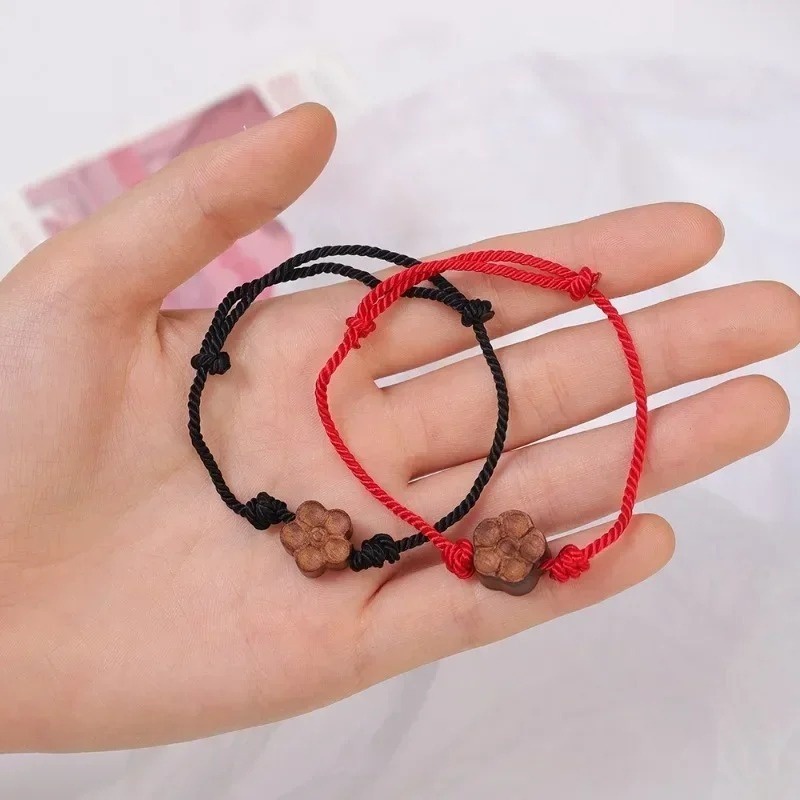 1 Vòng Tay Dây Đỏ May Mắn Mặt Gỗ Đào Có Thể Điều Chỉnh Thời Trang Cho Cặp Đôi
