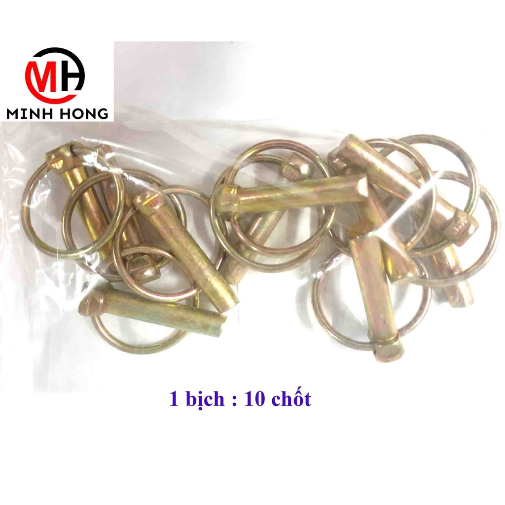 Chốt bật ( chốt khóa) gắn kiếm dàn cày 10mm Số lượng : 10 chốt / bịch ( đơn giá chia ra 10) Dùng chung cho nhiều dòng máy cày khác nhau ( không phân biệt dòng máy) => Chiều dài : 55mm => Đường kính vòng khuyên : 43mm => Đường kính thân ch