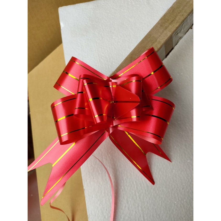 10 chiếc Nơ rút bản to 5cm trang trí giỏ quà oản tết đỏ sọc vàng - nơ,đủ màu