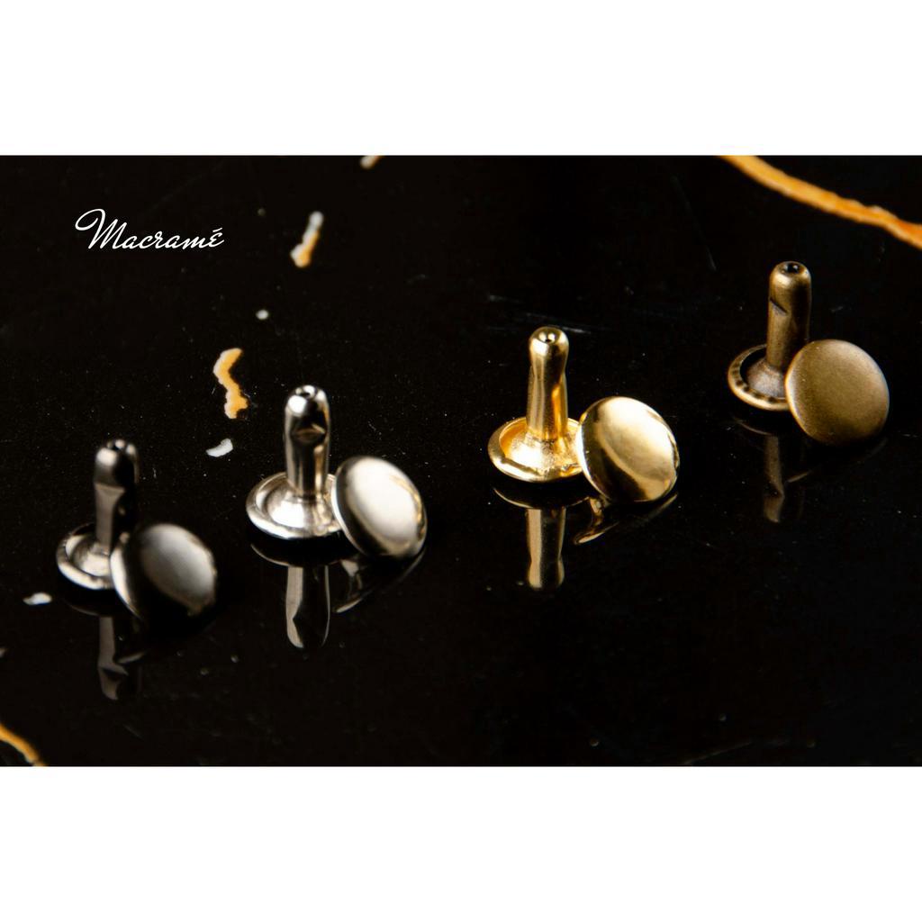 Đinh tán là 1 sản phẩm được ứng dụng rất phổ biến trong làm đồ da handmade, phụ kiện túi xách, balo, ví... Chất liệu: Đồng thau Màu: Vàng, Bạc, Đồng, Đen Kích thước: Đường kính mặt đinh x Chiều dài chân 6mm x 6mm 8mm x 6mm 8mm x 8mm 8mm x 10mm #phukiendinhtan #phu