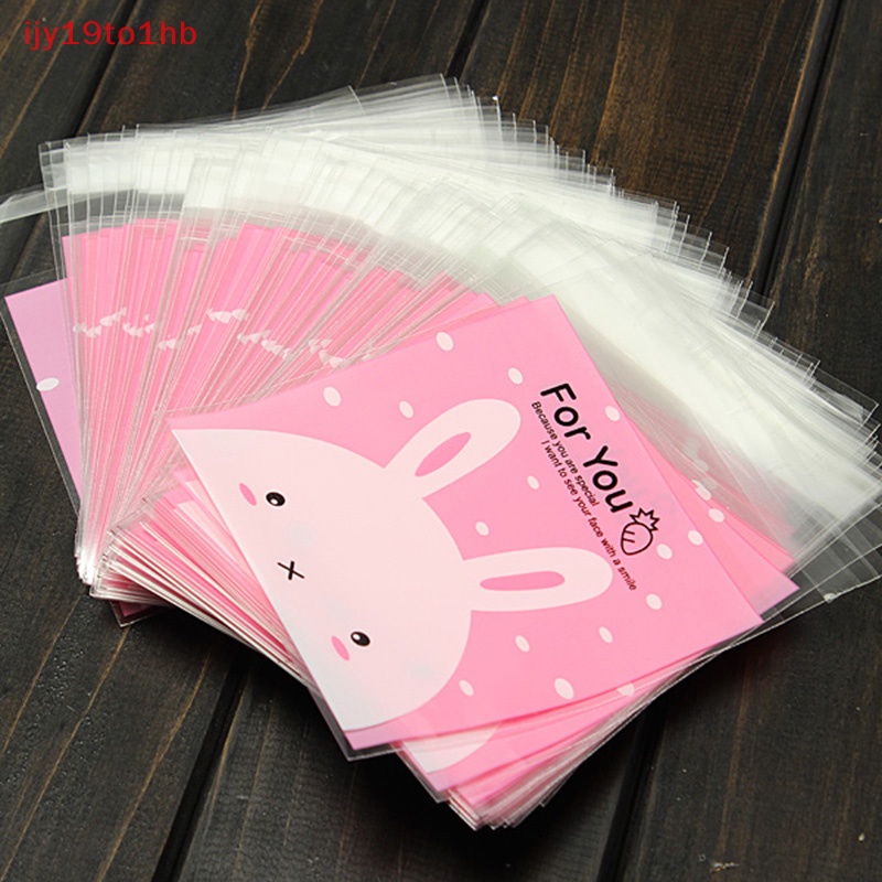 100 gói kẹo bánh quy tự dính họa tiết thỏ Túi Quà Tặng Giấy bóng kính sinh nhật mới