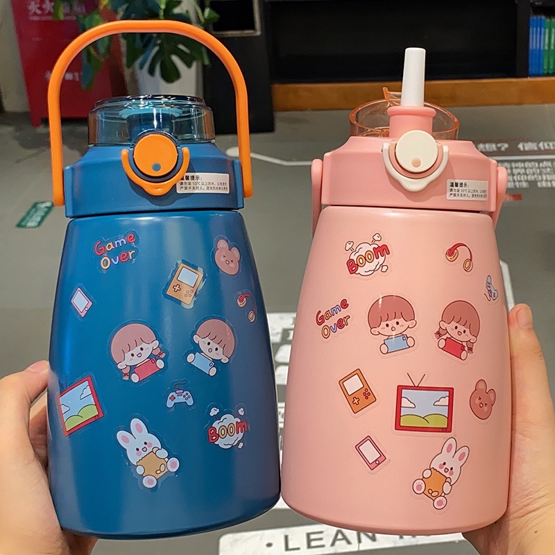 1000ML bình giữ nhiệt cute có ống hút, inox 304 không rỉ an toàn