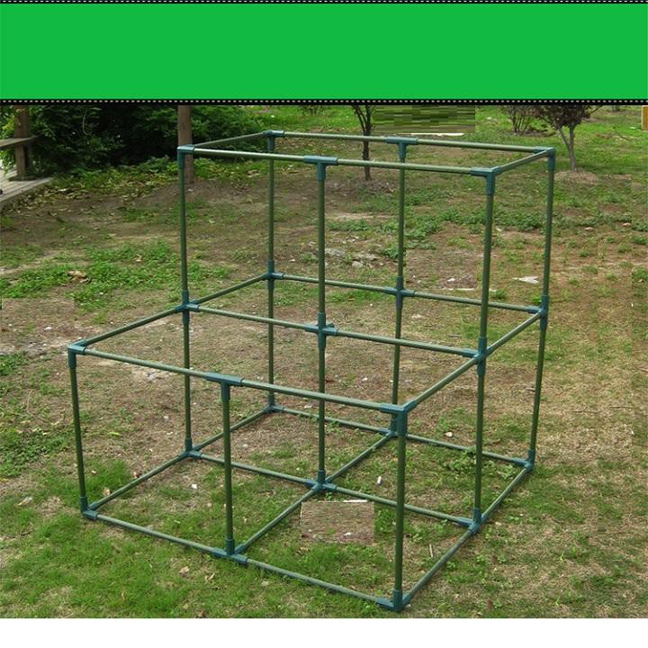 Thông thường để đan các cọc thành các ô vuông, hàng rào vuông ta hay dùng dây buộc nhưng mất nhiều thời gian và không đẹp về thẩm mỹ, mặt khác rất bất tiện khi tháo ráp. Dùng khớp nối sẽ nhanh chóng lắp ghép các Cọc sào thông minh bằng ống thép thành giàn cho cây leo,