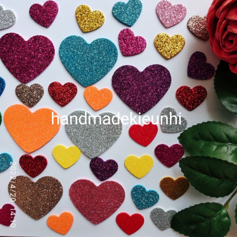 20-35-50 hình trái tim 2.5 x 2cm, 3.5×3.2cm, 4.9 X 4.2cm bằng giấy XỐP KIM TUYẾN - thủ công mầm non, trang trí thiệp...