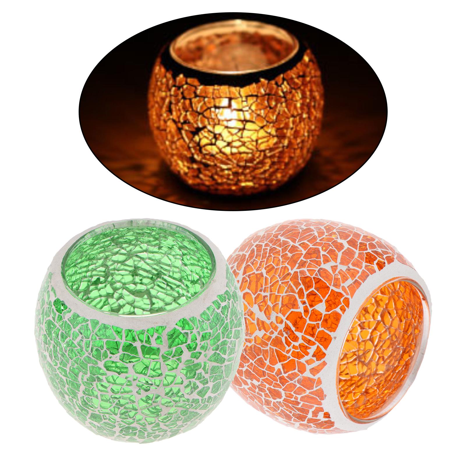 - Material: Glass - Outer dia: approx. 8.5cm/ 3.35inch - Inner dia: approx. 5.8cm/ 2.28inch - Height: approx. 6.8cm/ 2.68inch Package Includes: - 2 Pieces Mosaic Glass Candle Hol...