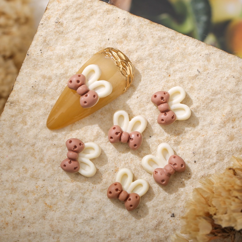 50 Phụ kiện trang trí móng tay nghệ thuật ROU BAO series gấu dâu mèo chuột mickey kem kaki nhiều màu sắc