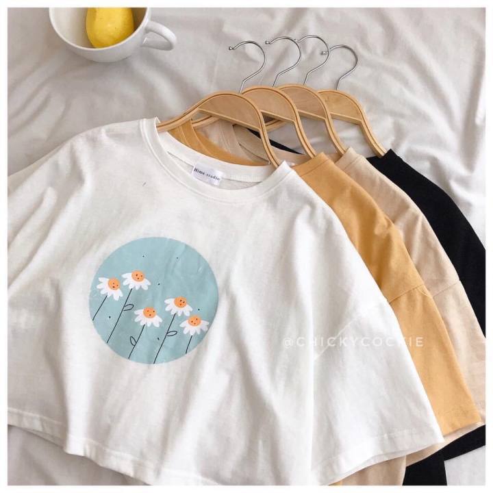 Aó thun CROPTOP nữ form rộng tay lỡ Unisex HOA BỒ CÔNG ANH freesize 45 - 70kg áo thun nam form rộng