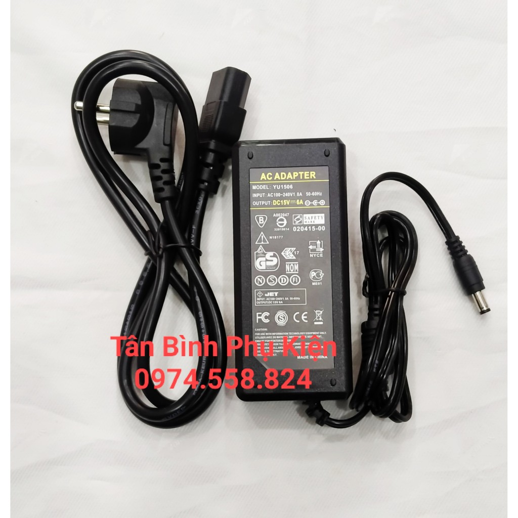 Adaptor sạc loa kéo 15V-6A, dây nguồn rời, hàng tốt