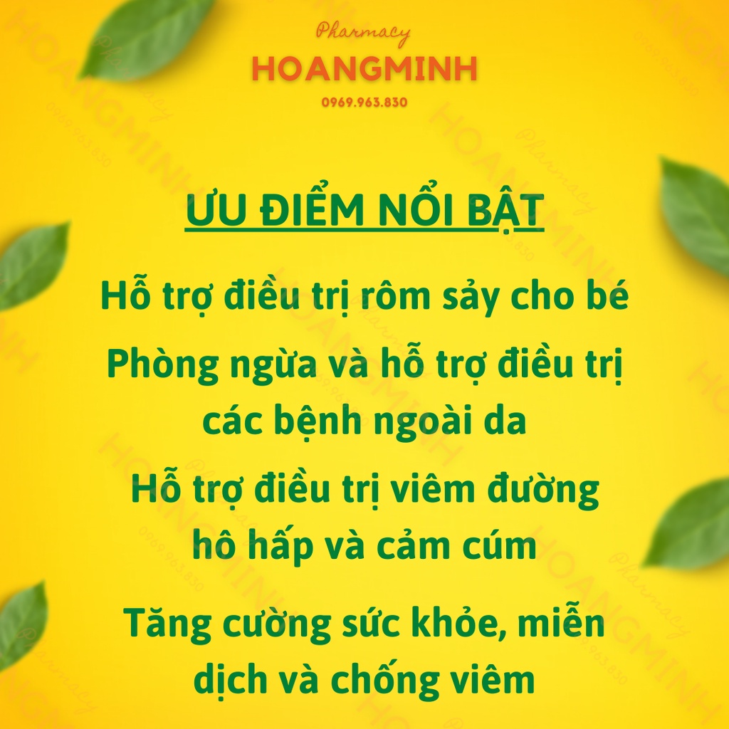 AMIBEBE |Chai 250ml| Nước Tắm Thảo Mộc Cho Bé, Làm Mát Cơ Thể, Thanh Nhiệt, Giải Độc, Kháng Khuẩn Gây Bệnh Trên Da ✅ ƯU ĐIỂM NỔI BẬT 🌟 Thanh nhiệt, giải độc, kháng khuẩn trên da (Staphylococcus aureus…), làm mát cơ thể, phòng và hỗ trợ rôm sẩy, mụn nhọt, lở ngứa, “cứt trâu” ở trẻ sơ sinh. 🌟 Tăng cường sức khỏe, tăng miễn dịch, chống v!êm, phòng và hỗ trợ v!êm đường hô hấp, cảm cúm. 🌟 Tăng hấp thu Calci, giúp trẻ em cứng cáp hơn (nhanh cứng cổ, lật người, gồi và đi hơn). ✅ THÀNH PHẦN CỦA NƯỚC TẮM TRẺ EM AMIBEBE: - Kim ngân:........... 32,5g - Trần bì:............... 10g - Nhàn châu:........... 20g ✅ TÁC DỤNG CỦA NƯỚC TẮM TRẺ EM AMIBEBE: 👉 Làm mát cơ thể, thanh nhiệt, giải độc, kháng khuẩn gây bệnh trên da (Staphylococcus aureus...) 👉 Tăng cường sức khỏe, tăng miễn dich và chống v!êm. ✅ LỢI ÍCH CỦA SẢN PHẨM NƯỚC TẮM TRẺ EM AMIBEBE: 👉 Phòng và ngăn ngừa rôm sảy, mụn nhọt, lở ngứa, nhanh hết “cứt trâu” ở trẻ sơ sinh và trẻ nhỏ. 👉 Phòng và ngăn ngừa v!êm đường hô hấp trên, cảm cúm cho trẻ em. ✅ MÔ TẢ VÀ HƯỚNG DẪN SỬ DỤNG Liều dùng và cách dùng Nước tắm trẻ em Amibebe: 25 - 50ml (1 -2 nắp chai)/lần/ngày. - Chuẩn bị nước tắm: Lấy khoảng 2-3 lít nước sôi (90-100oC) cho vào chậu tắm bé. Lắc đều chai. Lấy 25-50ml dung dịch tắm AMIBEBE cho vào, dùng gáo khuấy đều. Cho thêm 8-12 lít nước sinh hoạt (lượng pha nước đủ ấm). - Cách tắm: Rửa mặt cho bé bằng nước ấm thường. Gội đầu cho bé trước bằng nước thuốc, sau đó tắm thân mình của bé và ngâm khoảng 5-10 phút. Khi tắm xong không tráng nước khác. Nên sử dụng Amibebe hằng ngày cho bé. #amibebe #nước_tắm_thảo_dược #tắm_cho_bé #nước_tắm_cho_bé -------------------------------------------------------------------------------------------- HOANGMINH Pharmacy CAM KẾT: 🌟 Luôn tư vấn tận tâm, nhiệt tình với tâm của người Bác Sỹ 🌟 Đảm bảo tất cả sản phẩm luôn chính hãng 100%, nguồn gốc xuất xứ rõ ràng, nói không với hàng giả, hàng nhái, hàng kém chất lượng 🌟 Sản phẩm luôn có hạn sử dụng dài 🌟 Đổi trả miễn phí khi sản phẩm lỗi, hoặc hư hỏng khi vận chuyển 👉 Nên khi nhận được hàng mà có vấn đề gì thì mong bạn liên hệ lại với Shop ngay nha