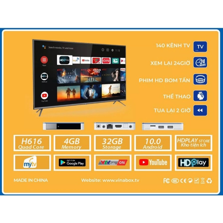 Android Box Mytvnet Net Phiên bản 4G – Xem Truyền Hình Bản Quyền Miễn Phí 140 Kênh (Sản phẩm Mytv Net phiên bản 4G, rom 32G - Android ATV 10.0) Đây là một sản phẩm mới nhất với phiên bản cao cấp được ra mắt dưới sự hợp tác giữa công ty TNHH Phân Phối Công Nghệ Và Dịch Vụ Mới Rồng Việt (VINAGO) với Công ty Phát Triển Dịch vụ Truyền Hình MyTV – Chi nhánh Tổng Công Ty Truyền Thông, với sự kết hợp tối ưu giúp chiếc Android Tv Box Mytvnet Net 1 có một vài lợi thế đặc biệt so với các sản phẩm Android Box thông thường khác trên thị trường như sau: – Với Cấu hình mạnh mẽ ram 4G, rom 32G, chip nhớ eMMC chính hãng Samsung nên tốc độ xử lý của Mytvnet Net 1 nhanh đáng kể, khá thoải mái với các tiện ích giải trí, xem truyền hình, youtube, phim ảnh và lướt web. – Mytvnet đầy đủ tất cả các cổng kết nối cần thiết hiện nay: 02 cổng USB 3.0 & 2.0 01 cổng HDMI 2.0 hỗ trợ 4K 01 cổng AV kết nối tv thường hay dàn loa 2 kênh 01 cổng âm thanh quang (Optical) giúp xuất audio ra dàn âm thanh số 01 cổng LAN RJ45 giúp bạn cắm lan trực tiếp nếu k có wifi 01 khe cắm thẻ nhớ TF card giúp mở rộng khả năng lưu trữ ----------------------------------- 1. MYNET TV 4H Trang bị cấu hình siêu mạnh với chip 4 Lõi H616 thế hệ mới nhất của Alwinner, Ram 4G, Rom 32G thoải mái cho sử dụng các tác vụ ứng dụng nhanh mượt và các loại game đòi hỏi cấu hình mạnh nhất hiện nay trên tv box. 2. MYNET TV 4H sử dụng hệ điều hành Android 10.0 giao diện ATV chuyên dùng cho TV giúp chất lượng hình ảnh đẹp 4K, trải nghiệm thân thiện trên TV đặc biệt hỗ trợ ra lệnh bằng giọng nói trơn tru, giúp bạn có những trải nghiệm tuyệt vời với chiếc tv box truyền hình thế hệ mới này. 3. MYNET TV 4H là một box truyền hình thực thụ được tích hợp nhiều ứng dụng truyền hình bản quyền, các kênh truyền hình xem miễn phí lên tới hơn 200 kênh: – Tích hợp VTVcab on – miễn phí 1 năm gói cơ bản (trị giá 450.000đ) – Tích hợp sẵn Mytv ứng dụng xem truyền hình – Tích hợp sẵn ứng dụng truyền hình Myk+ (trả phí) – Tích hợp các ứng dụng truyền hình tổng hợp khác xem trên 200 kênh tv và bóng đá 4. Tích hợp kho phim truyện HDplay Miễn phí 1 Năm (trị giá 400.000đ). Kho HDplay Store – kho ứng dụng tiện ích chuyên dùng cho TV Box – Các tiện ích hát karaoke trực tuyến mới nhất 5. Tích hợp kho Google Play tổng hợp, Youtube, Duyệt web, các ứng dụng chuyên dùng camera trên tv… và hàng triệu ứng dụng có thể tải… =============================== Về phần cứng và cấu hình, chiếc box Mytv Net 1 được trang bị cấu hình khá tân tiến hiện nay rất phù hợp với nhu cầu giải trí cơ bản và xem truyền hình, xem youtube trực tuyến. – Mytvnet Net 1 trang bị chip xử lý Amlogic S905W, dòng chip mới được tung ra thị trường vào dịp đầu năm 2018 giúp khẳng định về chất lượng và độ ổn định, ấn tượng với chất lượng hình ảnh đẹp, độ nét cao và hình ảnh trong, có chiều sâu trung thực hơn hẳn với các chip android box thông thường khác. Độ phẩn giải lên tới 4K sắc nét và hệ điều hành Android 7.1.2. – Với cấu hình ram 2G, tuy nhiên trang bị chip nhớ eMMC chính hãng