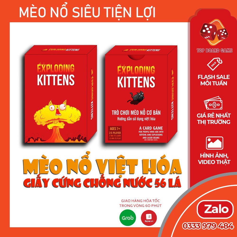 Bộ bài MÈO NỔ Hộp Giấy việt hóa Exploding kitten NHANH, VUI, BÙNG NỔ VÀ BỰA chơi cùng nhóm bạn