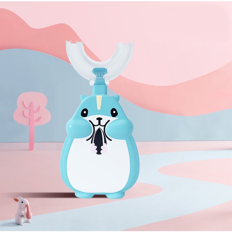 Bàn Chải Đánh Răng Chữ U Silicon Thực Phẩm Trong Suốt Tuyệt Đối An Toàn - Bàn chải chữ U cầm tay hình SÓC