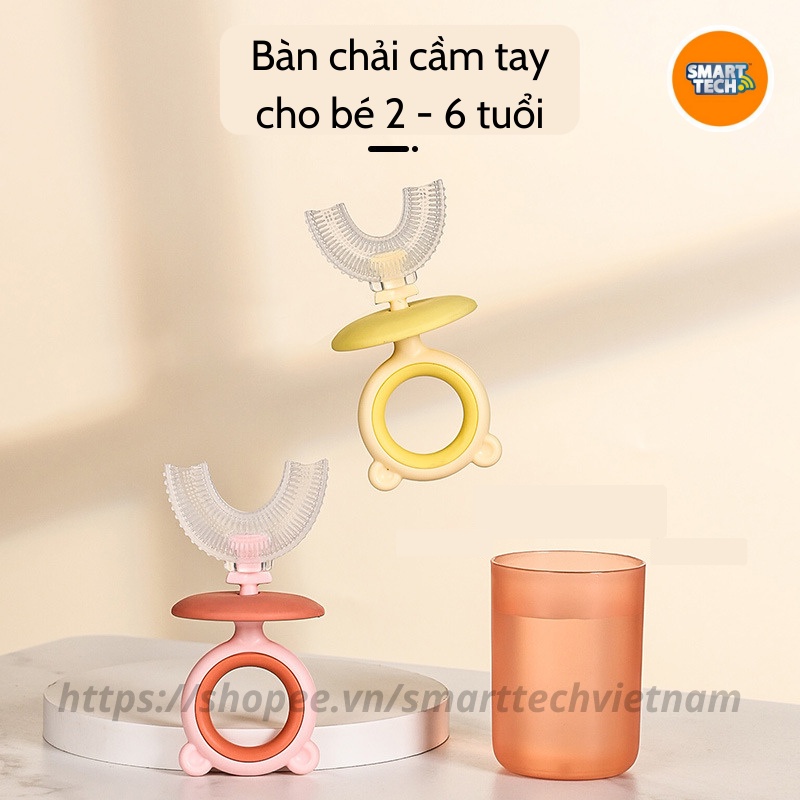 Bàn chải đánh răng cho bé TEDDY - Bàn chải cầm tay chữ U silicone có kèm cốc đánh răng tiện lợi cho bé từ 2 tuổi