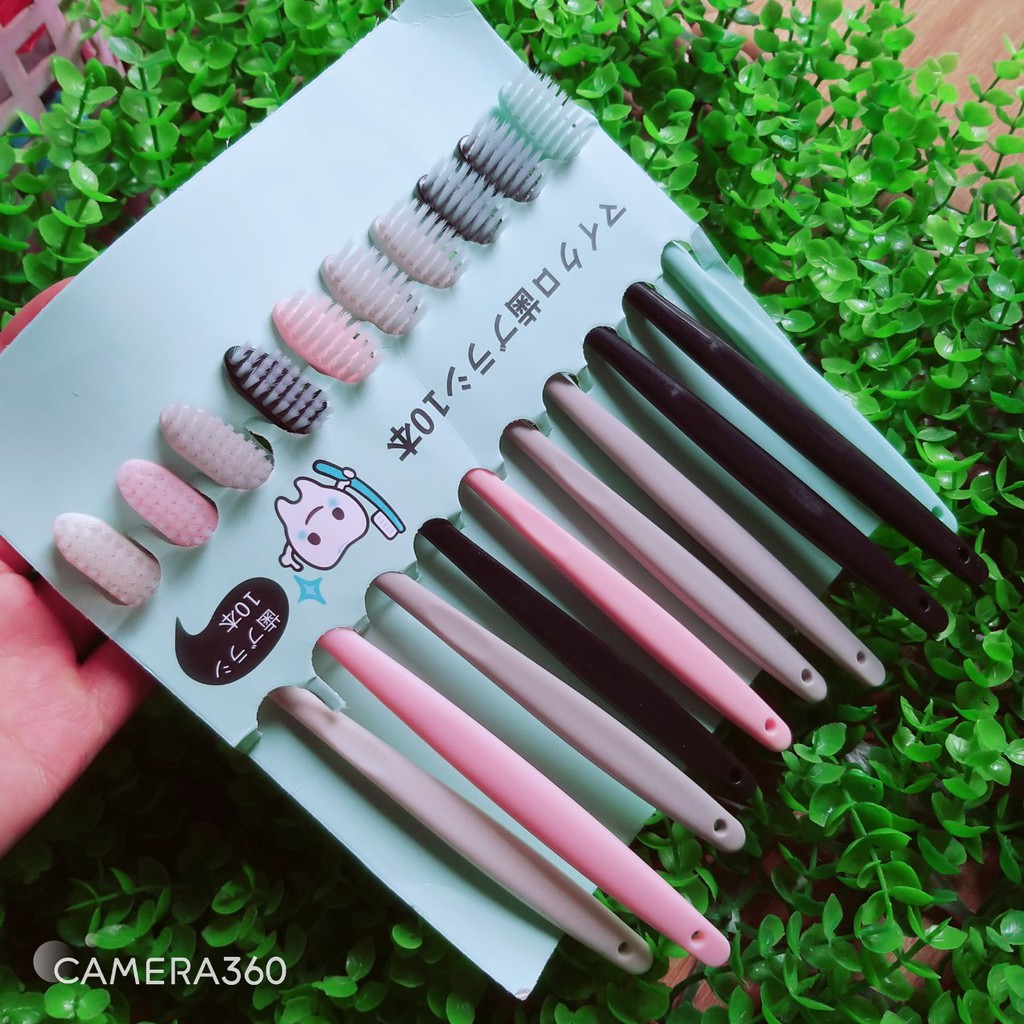 1) Lẻ 1 bàn chải : Chỉ gồm 1 bàn chải và 1 bọc đầu và được đóng túi linon ngoài ( cái này bên mình tách lẻ ra theo yêu cầu của nhiều khách chỉ muốn mua 1 chiếc) 2) Set 10 bàn chải : Gồm 10 bàn chải + 10 bọc đầu + Hộp Daily bảo vệ cho cả set như ảnh • Đầu bàn chải siêu nhỏ nên sẽ giúp bạn dễ dàng làm sạch vùng răng cùng nằm sâu bên trong hàm. Lông bàn chải có khả năng kháng khuẩn lên đến 99,9%, ngăn chặn vi khuẩn sinh sôi, nảy nở từ đó giúp bạn ngăn chặn được bệnh sâu răng, viêm nướu. • Bộ sản phẩm có đến 10 cây bàn chải đánh răng Xuất Nhật, mua một lần có thể sử dụng được cả năm. Chỉ cần khoảng 3 4 tháng bạn thay bàn chải một lần để đảm bảo an toàn vệ sinh và chăm sóc răng được tốt hơn. Mỗi cây bàn chải đánh răng, đều có phần hộp để bọc đầu bàn chải đánh răng lại, thuận tiện cho bạn cất giữ hoặc mang theo khi đi du lịch, công tác. • Nhiệt độ chịu nhiệt: 80 ℃, không để sản phẩm ở những nơi có nhiệt độ quá cao hoặc quá ẩm thấp.