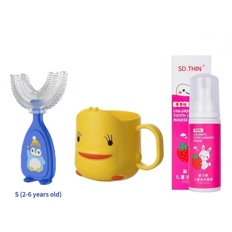Bàn Chải Chữ U Silicon Cho Bé Và Kem Đánh Răng Dạng Bọt Từ 2 đến 12 Tuổi
