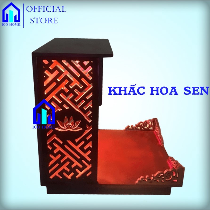 Bàn thờ ông địa thần tài bằng gỗ khắc hoa sen cực đẹp đón tài lộc vào nhà, gắn sẵn đèn led - ICO HOME