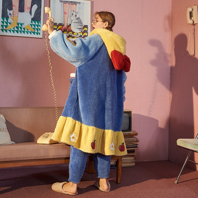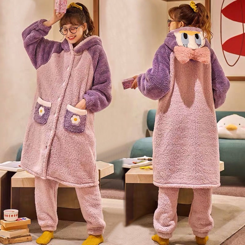 ❤️ Bán Nóng❤️ Bộ Đồ Ngủ Chất Nỉ Dày Dặn Giữ Nhiệt In Họa Tiết Hoạt Hình Dễ Thương Thời Trang Mùa Đông Cho Nữ