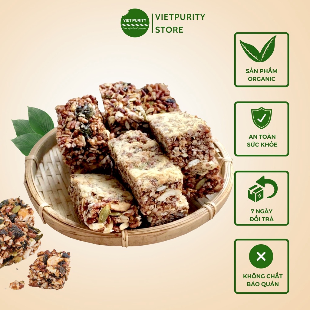 Bánh gạo lứt ngũ cốc ăn kiêng giảm cân rong biển chà bông Vietpurity, granola dạng thanh, ăn vặt healthy, eatclean