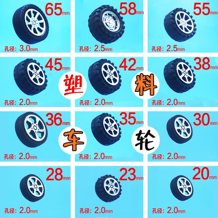 Bánh xe nhựa đủ kích thước dành để chế tạo đồ chơi ô tô điều khiển từ xa