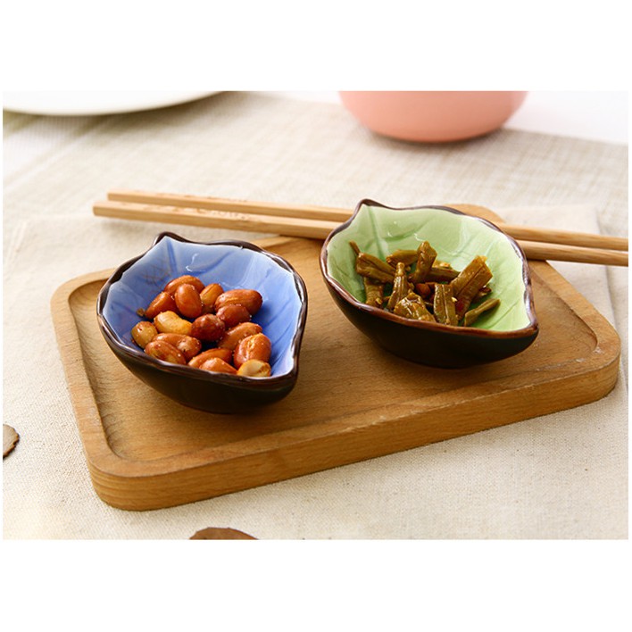 Bát Gốm đựng gia vị Hình Lá màu men nứt loại nhỏ