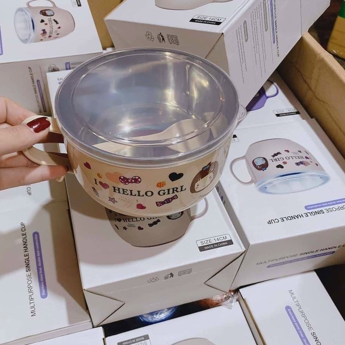 Bát tô ăn cháo mì phở 2 lớp cách nhiệt chống nóng có nắp đậy kèm thìa muỗng tiện lợi