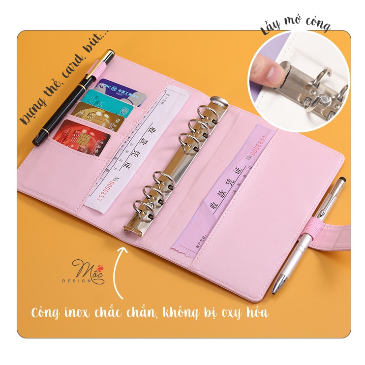 Bìa da sổ CHI TIÊU, sổ Tiết Kiệm, sổ còng 6 màu Bullet Journal màu pastel ngọt ngào