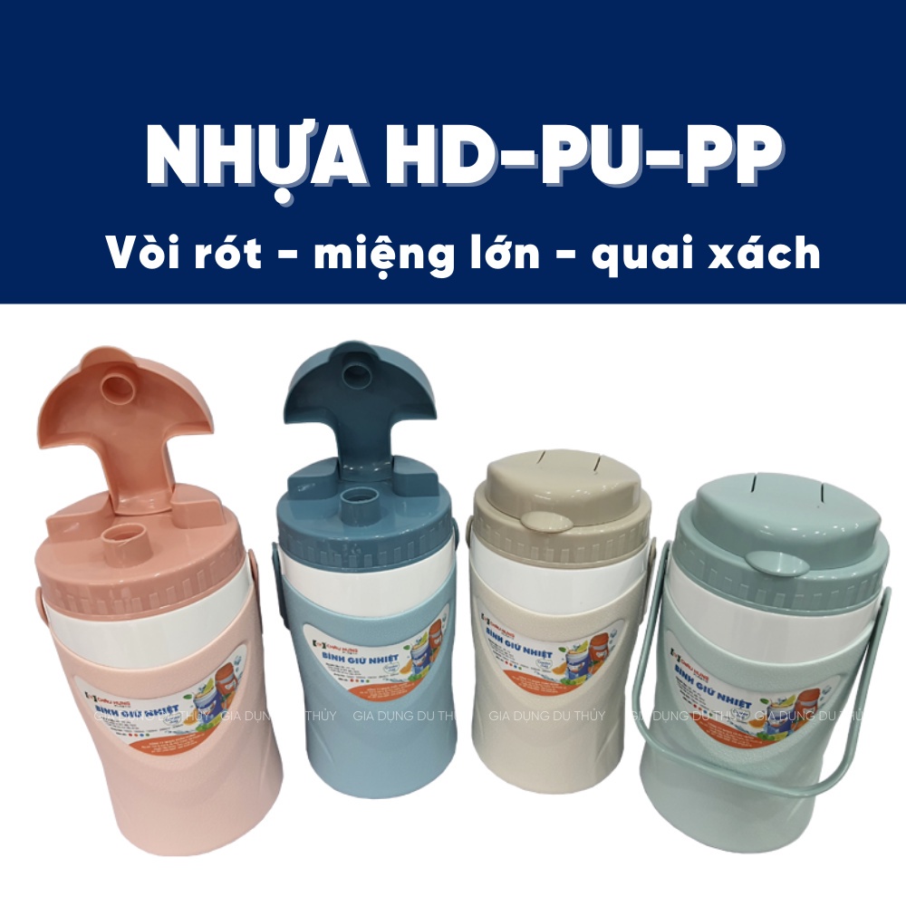 Bình đá giữ nhiệt 0.75L - 1L - 1.5L - 2L - 3L có quay xách tiện lợi, miệng bình lớn dễ vệ sinh - giadungduthuy