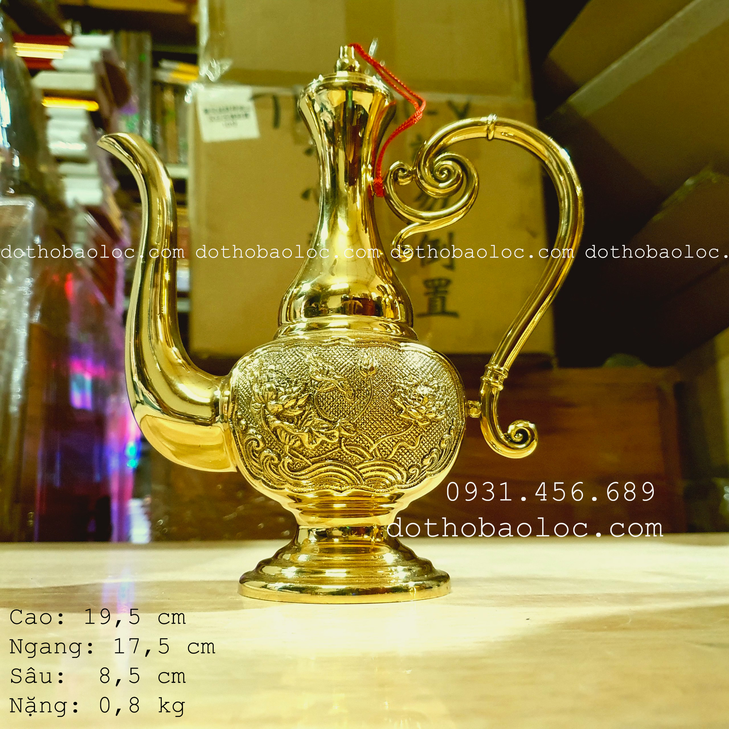 Kích cỡ : Cao 19,5cm Ngang: 17,5cm Sâu: 8,5cm Nặng 0,8 kg Chất liệu: đồng 100% Sản phẩm có hoa văn đẹp, sắc xảo. Dùng để đựng r.ượu trên bàn thờ cúng gia tiên, bàn Phật, Di Lặc, Tài Địa. Sản phẩm tinh xảo tuyệt đối, vàng đồng sáng bóng đem lại nét sang trọng không kém phần cổ kính cho bàn thờ gia tiên, tổ tông trong các gia đình Việt Nam. Đặc biệt hơn, Vĩnh Tiến cam kết sản phẩm của công ty đạt độ hoàn hảo và giữ nguyên chất lượng cũng như màu sắc trong 5 năm sử dụng. Đã và đang được khách hàng chứng minh và tin dùng sản phẩm ngày một nhiều. Đây chính là điều làm nên một thương hiệu chuẩn Việt Nam chất lượng cao. TẤT CẢ SẢN PHẨM ĐỀU DO SHOP TỰ CHỤP SHOP ĐỒ THỜ CÚNG LỘC PHÁT 0931 456 689 0979 456 689 0773 456 689 Website: #bình_đồng #đồng #đồ_đồng #binhdong #dong #dodong #bình_ruou_đồng #binhbongdong #vĩnh_tiến #đồng #đồ_đồng #đồ_thờ_cúng #vinh_tien #do_dongGiá sản phẩm trên Tiki đã bao gồm thuế theo luật hiện hành. Bên cạnh đó, tuỳ vào loại sản phẩm, hình thức và địa chỉ giao hàng mà có thể phát sinh thêm chi phí khác như phí vận chuyển, phụ phí hàng cồng kềnh, thuế nhập khẩu (đối với đơn hàng giao từ nước ngoài có giá trị trên 1 triệu đồng).....