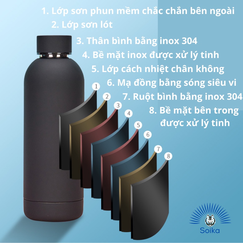 Bình Giữ Nhiệt Cao Cấp SOIKA SB07500 Chai Nước Inox 304 Cách Nhiệt Chân Không Nhiều Màu