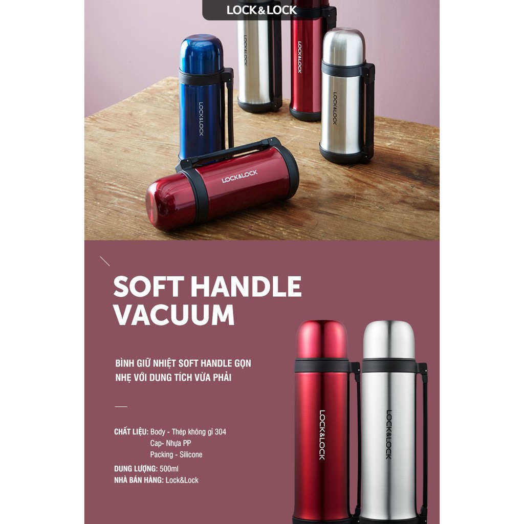 Bình giữ nhiệt Lock&Lock Soft Handle 500ml có tay cầm - Màu đỏ LHC1417RED