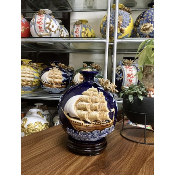 Bình Hút Lộc_Bình Bông Thuận Buồm Xuôi Gió đắp Nổi_Gốm Sứ Bát Tràng cao cấp_trang trí_decor