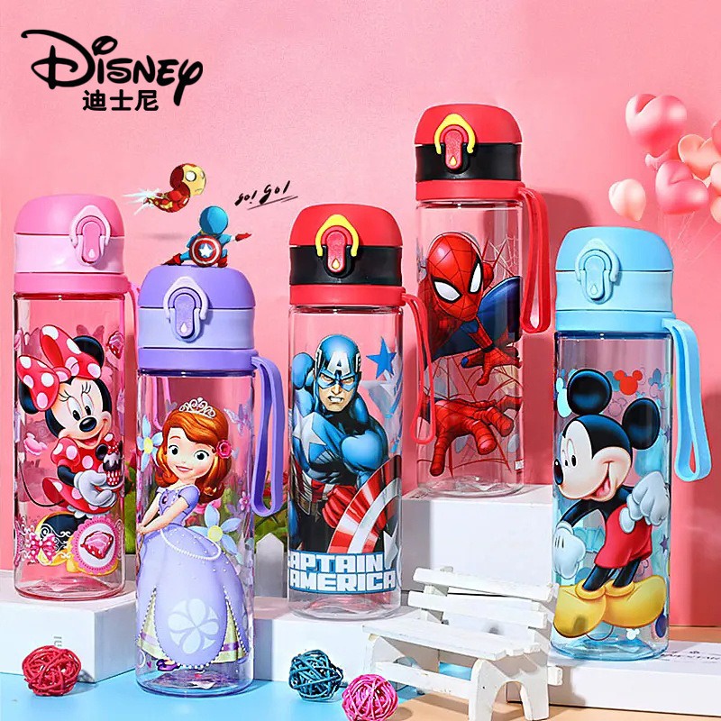 Cốc nhựa cho trẻ em Disney Marvel Ống hút trực tiếp Uống nước kép Dây đeo ấm đun nước cho học sinh di động Cốc nước mùa hè cho bé