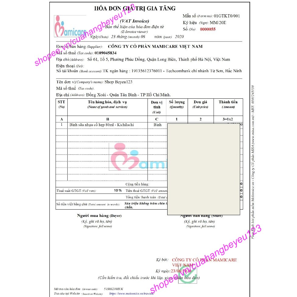 Bình sữa nhựa cổ hẹp 80ml không BPA Kichilachi Kichi