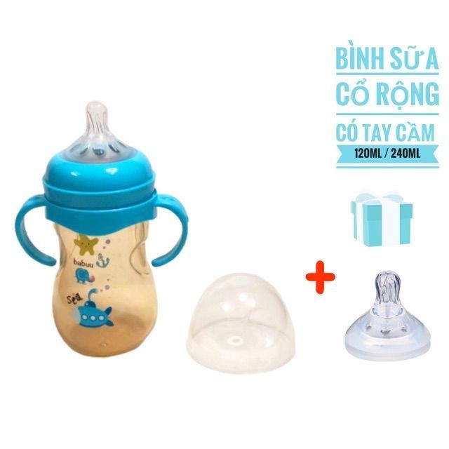 Bình sữa PPSU cổ rộng quai cầm Babuu Baby 120ml/240ml