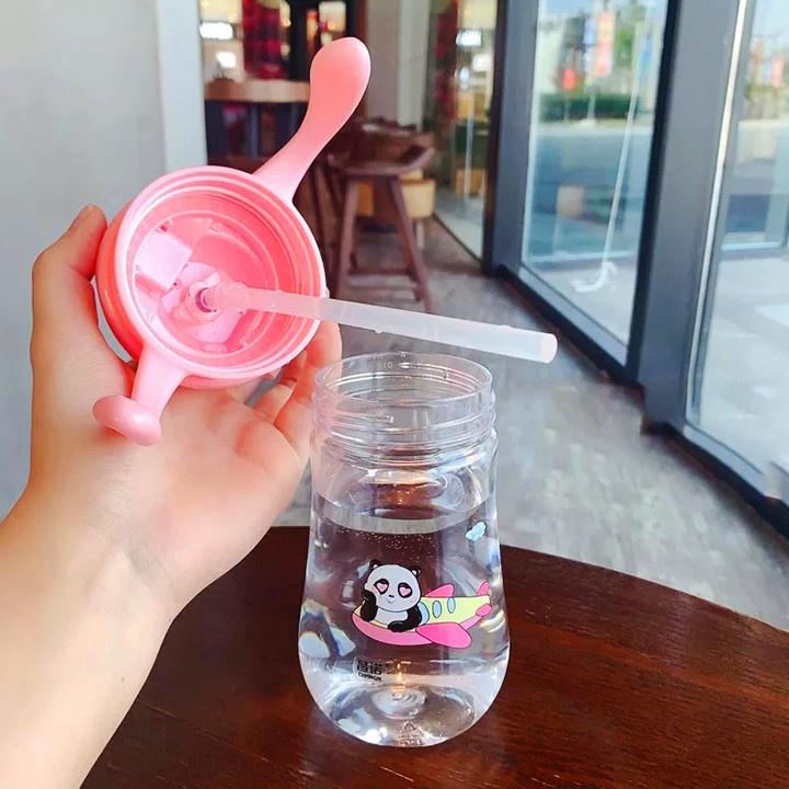 Bình nước cho bé đi học Bình tập uống nước Sừng Nai dễ thương có ống hút chống sặc dung tích 600ml