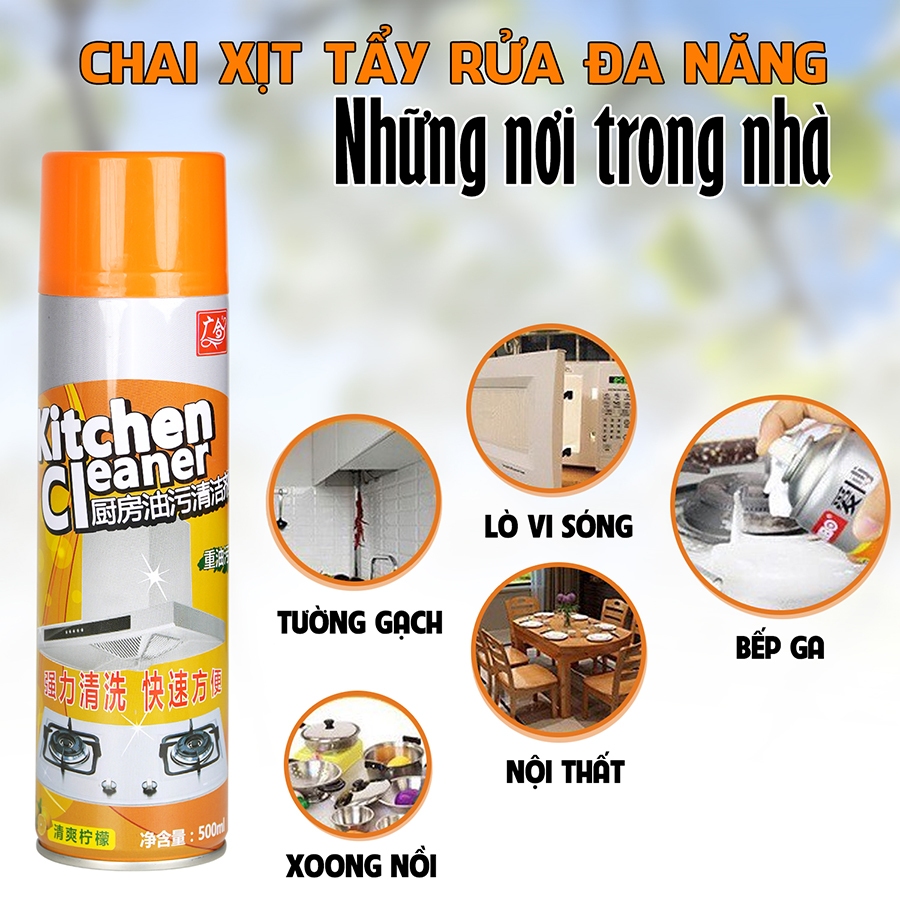Bình xịt vệ sinh nhà bếp tẩy rửa đa năng, loại bỏ dầu mỡ và vết bẩn ngay lập tức, loại bỏ mảng bám siêu sạch KITCHEN
