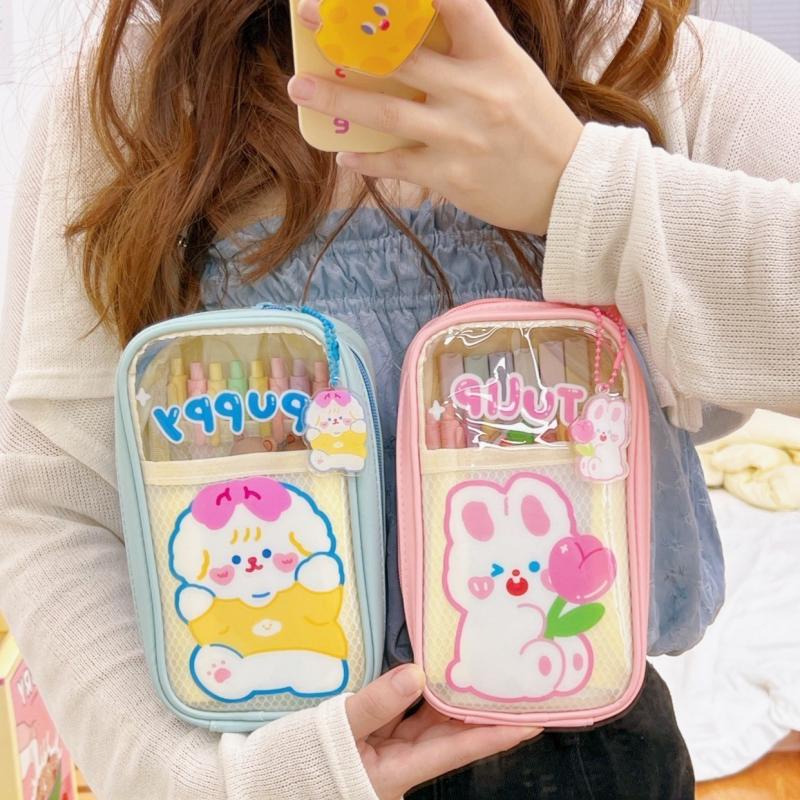 Túi đựng bút trong suốt, bóp viết trong suốt hộp bút cute hình hoạt hình TB03