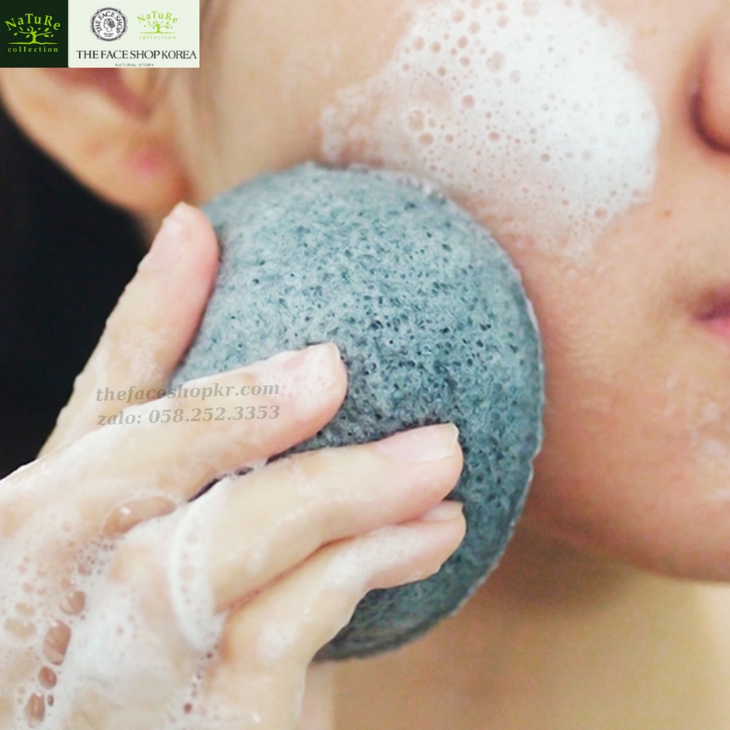 Bông rửa mặt bọt biển làm sạch sâu da mặt sợi mềm mại khử khuẩn Charcoal & Konjac Cleansing Puff The Face Shop