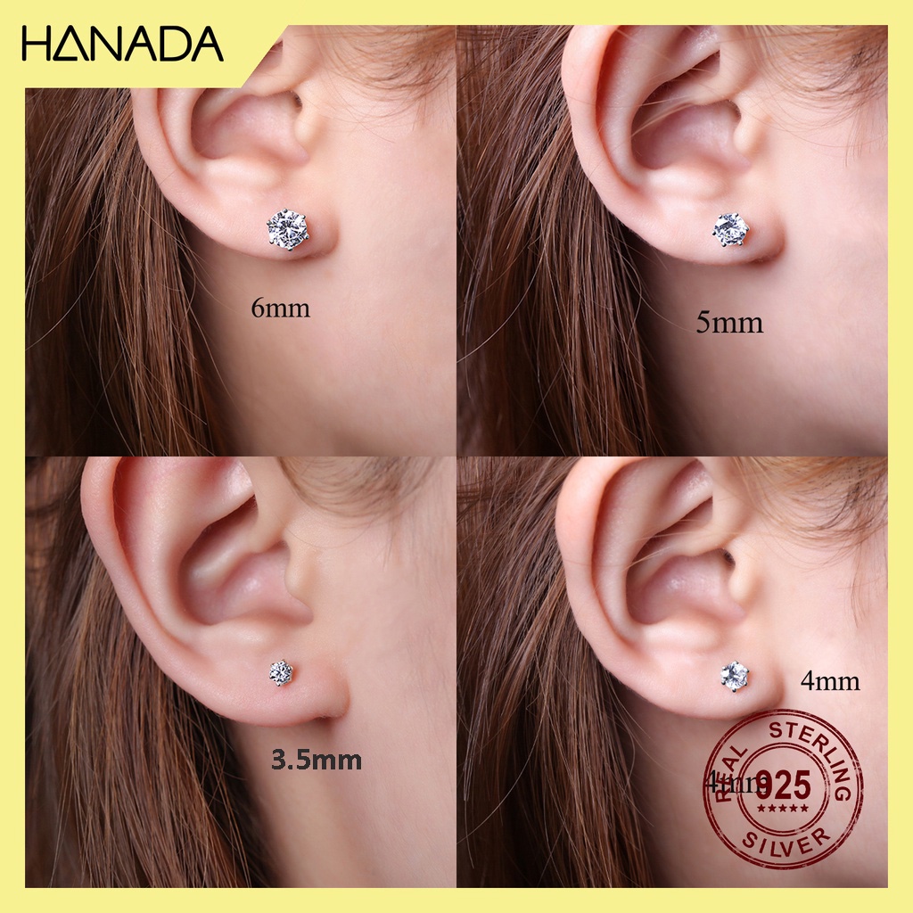 Bông Tai Bạc 925 HANADA Chuôi Vặn 6 Chấu Dày Dặn Đá CZ 6A Chuẩn 120 Lát Cắt Siêu Lấp Lánh Không ố 6 Chấu Vặn 0927 D9