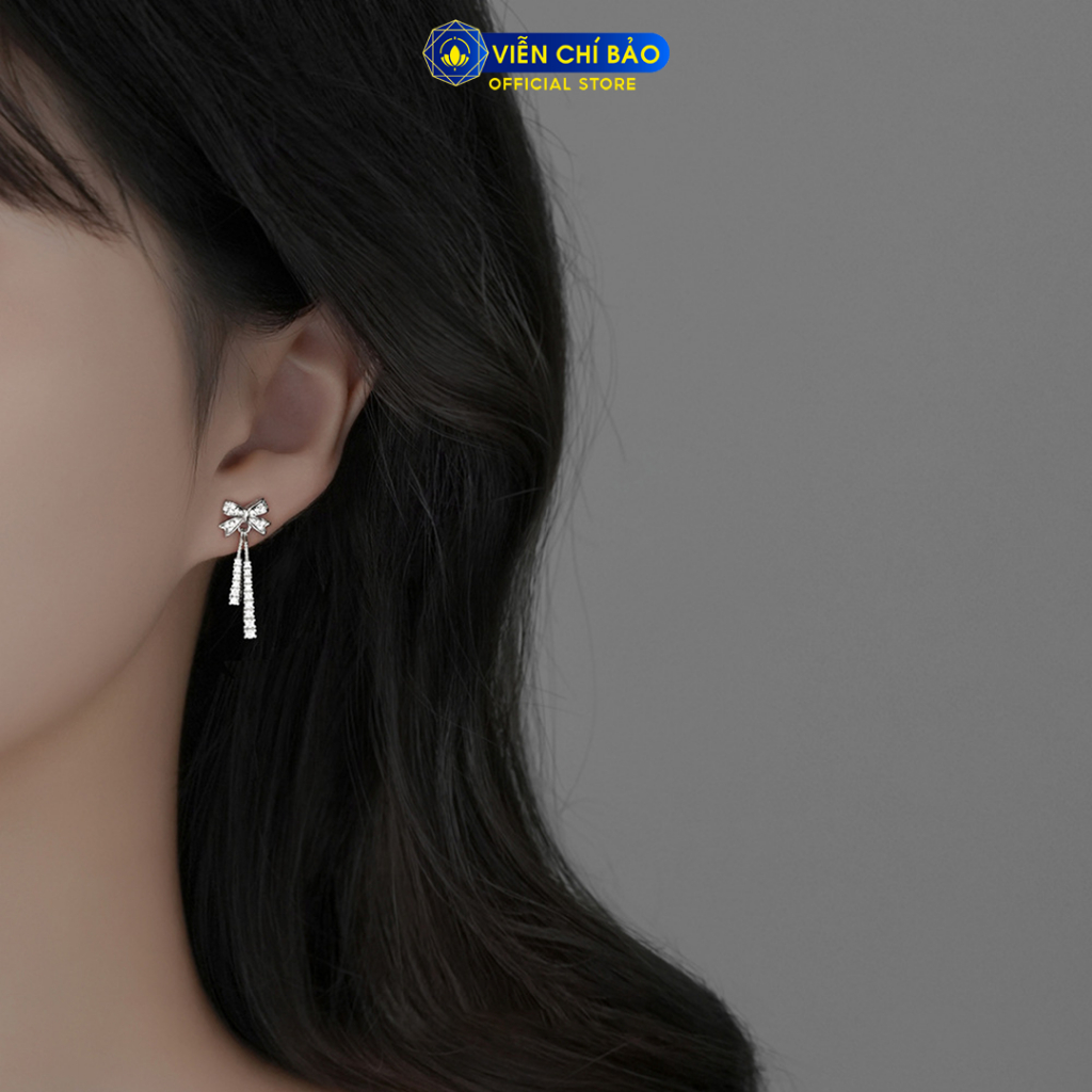 Bông tai bạc nữ nơ tua dài chất liệu bạc 925 thời trang phụ kiện trang sức Viễn Chí Bảo B400358