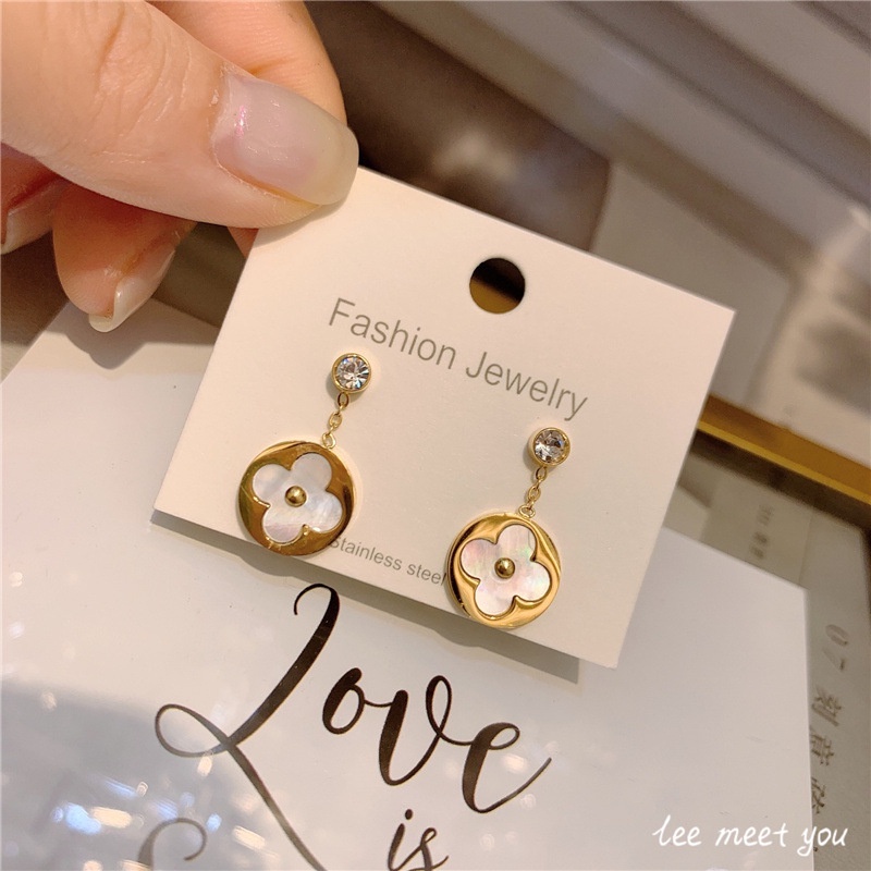 Bông Tai Bằng Thép Titan Mạ Vàng 18K Hình Cỏ Bốn Lá Không Gây Dị Ứng
