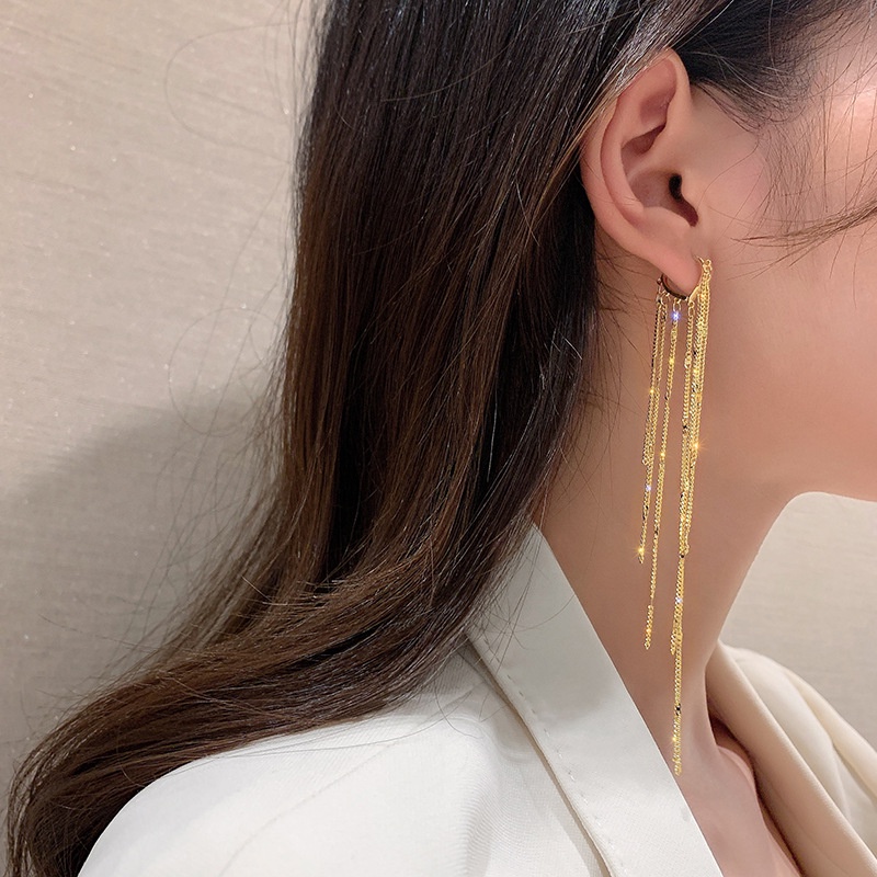 Bông Tai Dáng Dài Phối Tua Rua Thời Trang Hàn Quốc 2020 Chất Lượng Cao