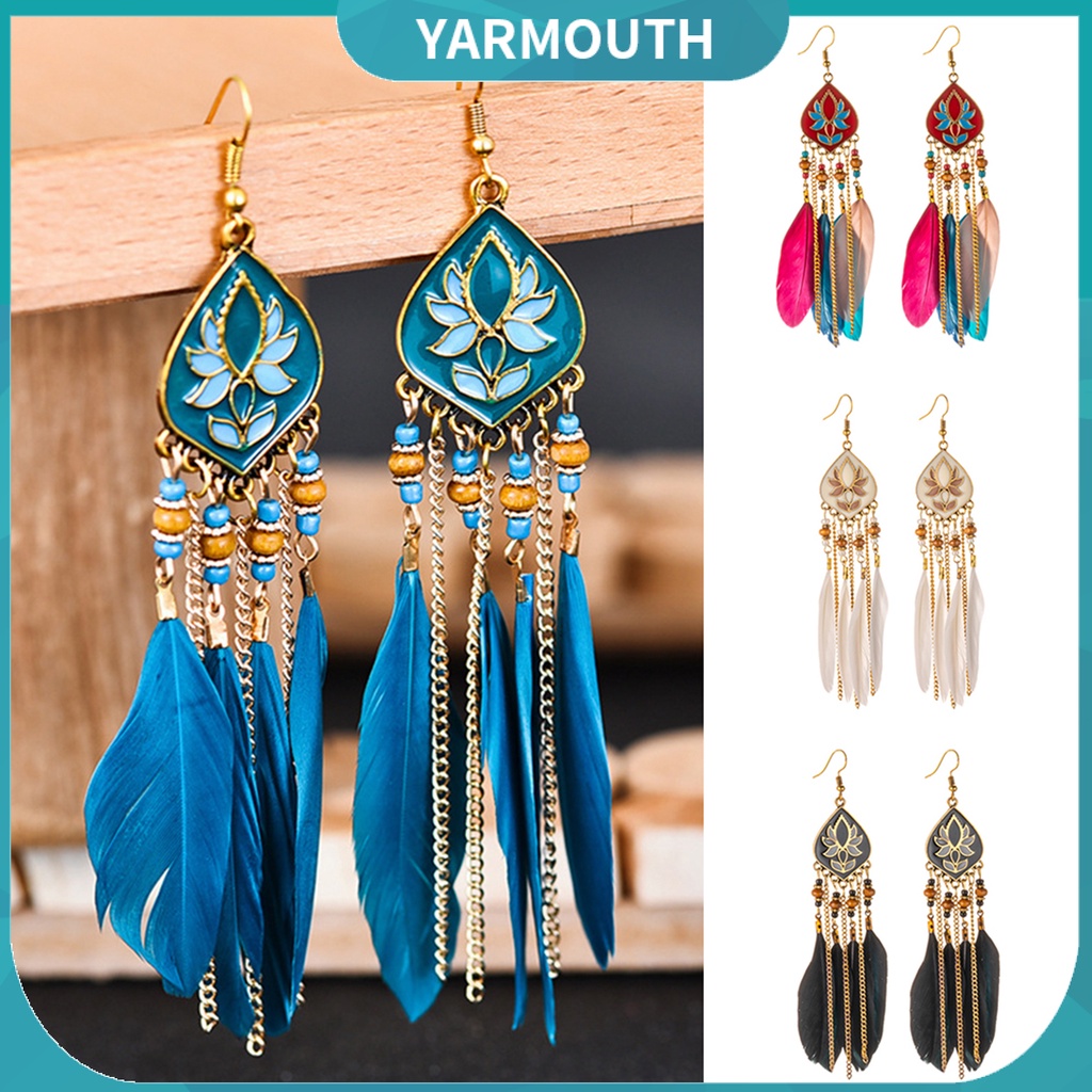 Đôi Bông Tai Dáng Dài Phối Lông Vũ Phong Cách Bohemian Thời Trang Cho Nữ